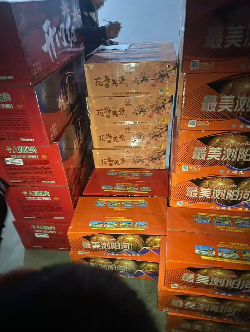 随后,民警对两处查获的烟花爆竹进行现场清点核对,确认共计查获烟花爆竹400余箱,总重量约1吨,经初步估算涉案价值达1万余元。经查,高某、张某均未取得烟花爆竹存储相关资质,其非法储存行为已违反相关法律法规。